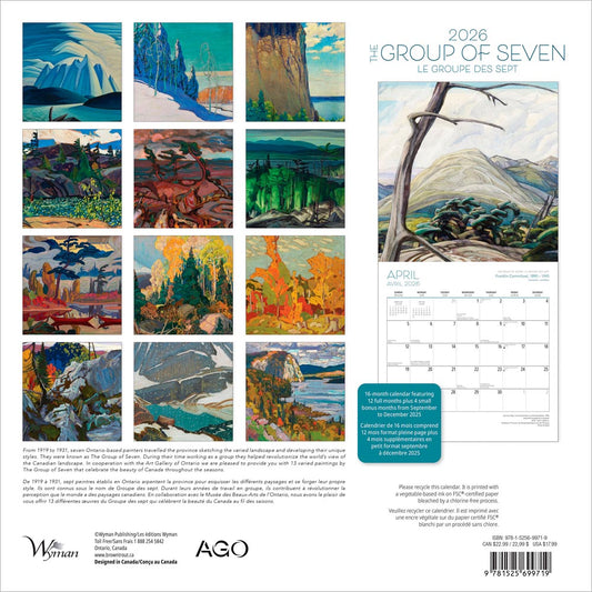 The Group of Seven AGO OFFICIAL | 2026 12 x 24 Inch (Hanging) Monthly Square Wall Calendar | English/French Bilingual