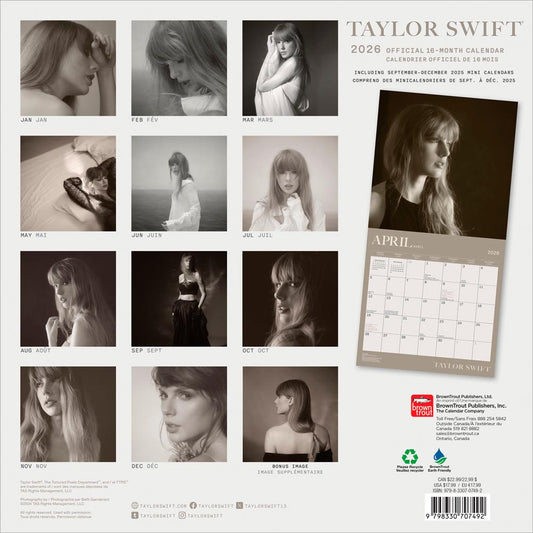 Taylor Swift OFFICIAL | 2026 12 x 24 Inch (Hanging) Monthly Square Wall Calendar | English/French Bilingual