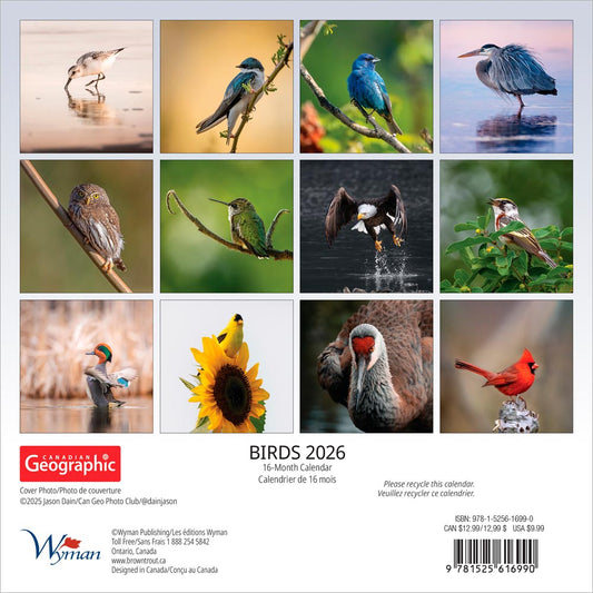 Canadian Geographic Birds OFFICIAL | 2026 12 x 24 Inch (Hanging) Monthly Square Wall Calendar | Foil Stamped Cover