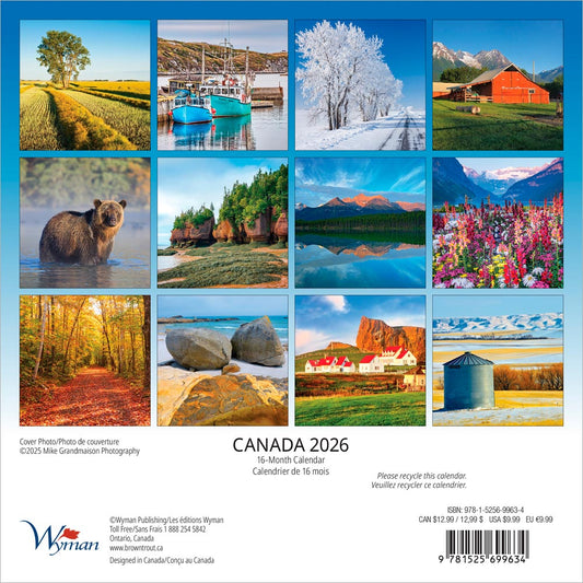 Canada | 2026 12 x 24 Inch (Hanging) Monthly Square Wall Calendar | English/French Bilingual
