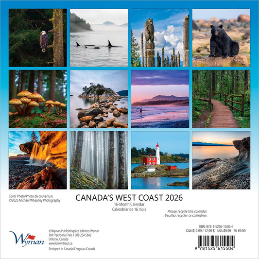 Canada's West Coast | 2026 12 x 24 Inch (Hanging) Monthly Square Wall Calendar