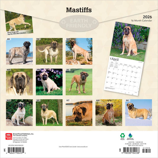 Mastiffs | 2026 12 x 24 Inch (Hanging) Monthly Square Wall Calendar