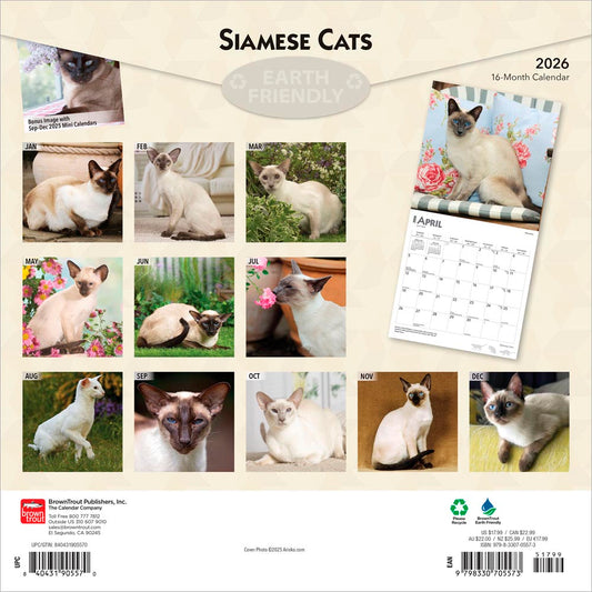 Siamese Cats | 2026 12 x 24 Inch (Hanging) Monthly Square Wall Calendar