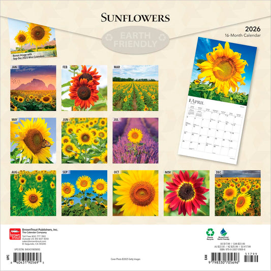 Sunflowers | 2026 12 x 24 Inch (Hanging) Monthly Square Wall Calendar