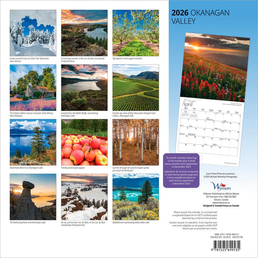 Okanagan Valley | 2026 12 x 24 Inch (Hanging) Monthly Square Wall Calendar