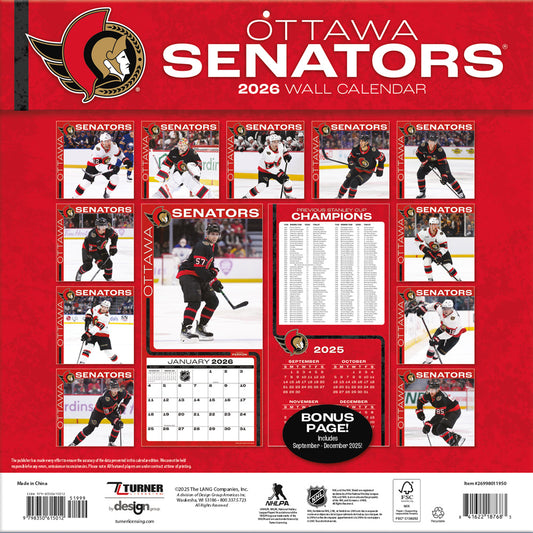NHL Ottawa Senators 2026 12x12 Wall Calendar