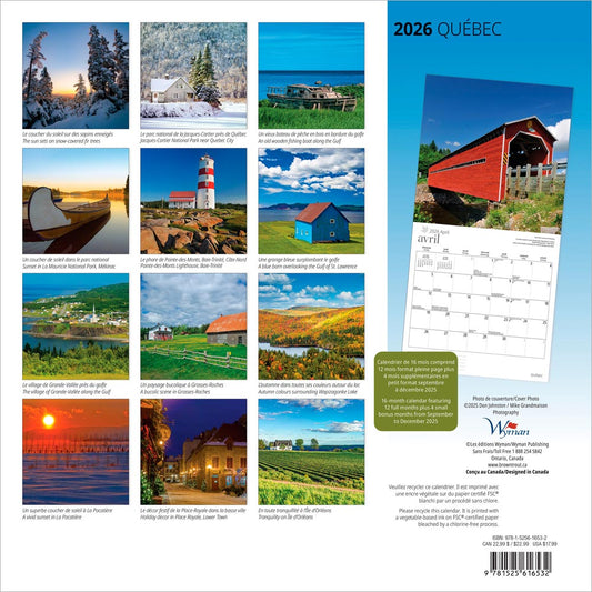 Quebec | 2026 12 x 24 Inch (Hanging) Monthly Square Wall Calendar | English/French Bilingual