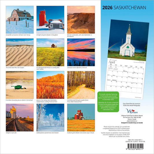 Saskatchewan | 2026 12 x 24 Inch (Hanging) Monthly Square Wall Calendar