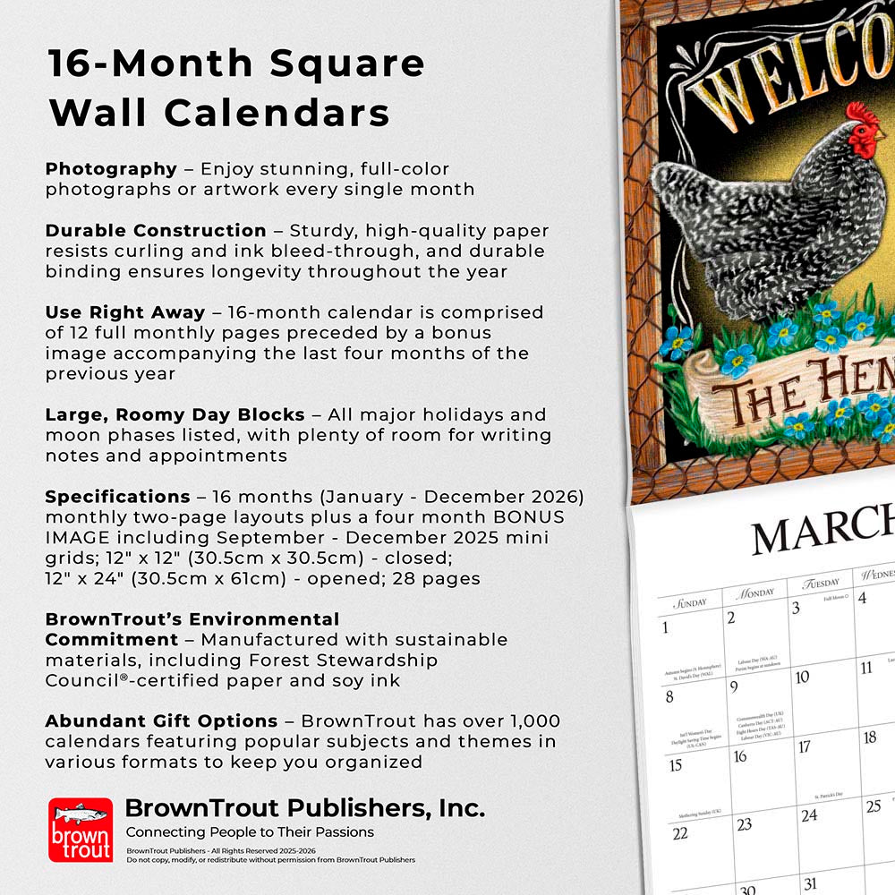 - Abundant Gift Options – BrownTrout has over 1,000 calendars featuring popular subjects and themes in various formats to keep you organized