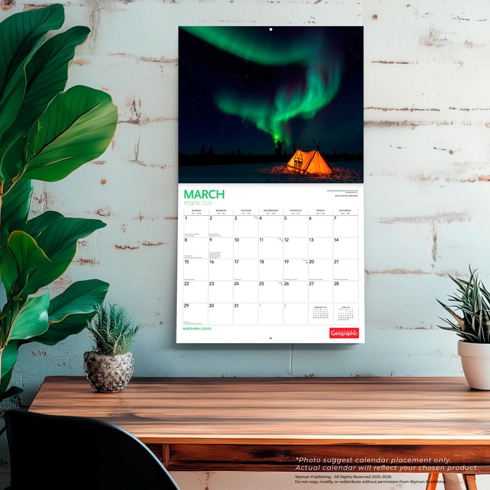 Canadian Geographic Northern Lights OFFICIAL | 2026 14 x 24 Inch (Hanging) Monthly Deluxe Wall Calendar | Foil Stamped Cover and Envelope