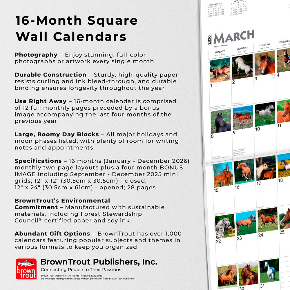 365 Days of Horses | 2026 12 x 24 Inch (Hanging) Monthly Square Wall Calendar
