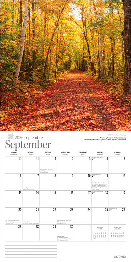 Ontario | 2026 12 x 24 Inch (Hanging) Monthly Square Wall Calendar | English/French Bilingual