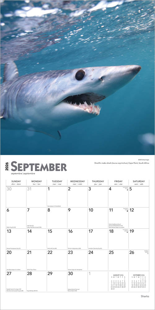 Sharks | 2026 12 x 24 Inch (Hanging) Monthly Square Wall Calendar